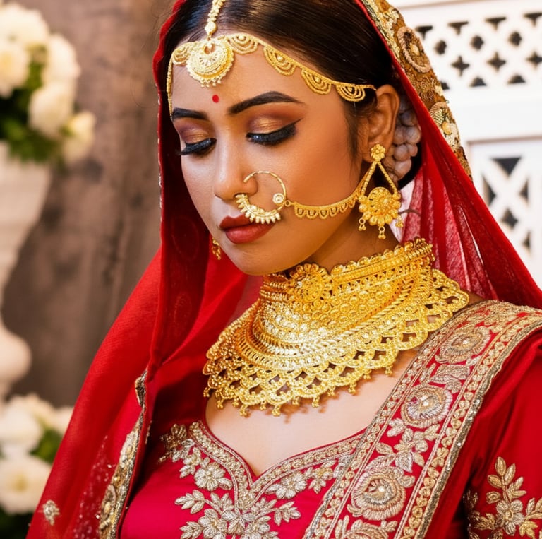 Celebrate Bengal's rich heritage through authentic traditional Bengali jewellery: iconic Sakha Pola gold-plated bangles (traditional red and white married women's bangles), classic gold-plated Bala bangles with ceremonial patterns, and timeless imitation Sitahar necklace designs inspired by West Bengal's royal legacy—elaborate multi-strand bridal necklaces reimagined for contemporary comfort.